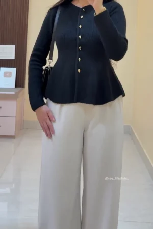 Chic Ribbed Peplum Button-Down Cardigan — Elegant Long-Sleeve Knit Tunic for Versatile Fall & Winter Layering