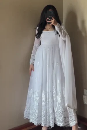 White Anarkali Suit for Women – Elegant Floor-Length Embroidered Anarkali Dress with Dupatta for Weddings, Festive Occasions & Party Wear