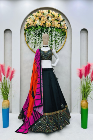 BLACK RAINBOW THREAD WORK FESTIVAL WEAR LEHENGA CHOLI