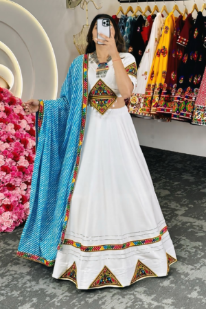 CLASSY COTTON LEHENGA CHOLI SET WITH REAL MIRROR & KODI WORK