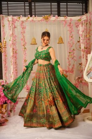 Peacock green silk lehenga set