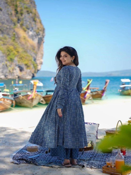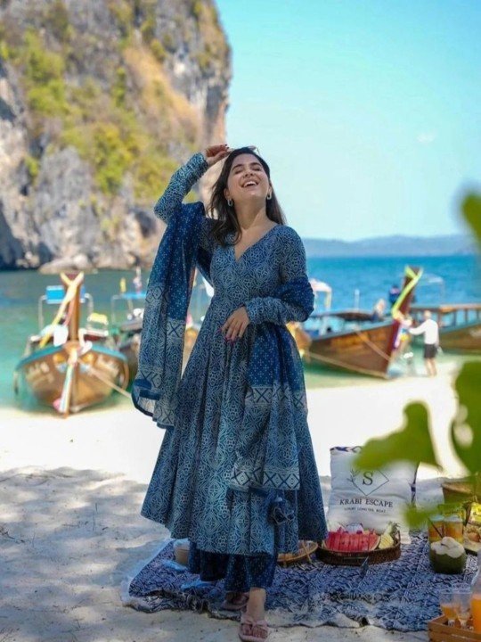 + Free ShippingBlue and white printed Kurta with Palazzos and dupatta