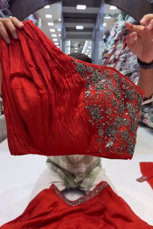 Be the first to review “Beautiful Peach Silk Saree with Silver Border and Designer Blouse”