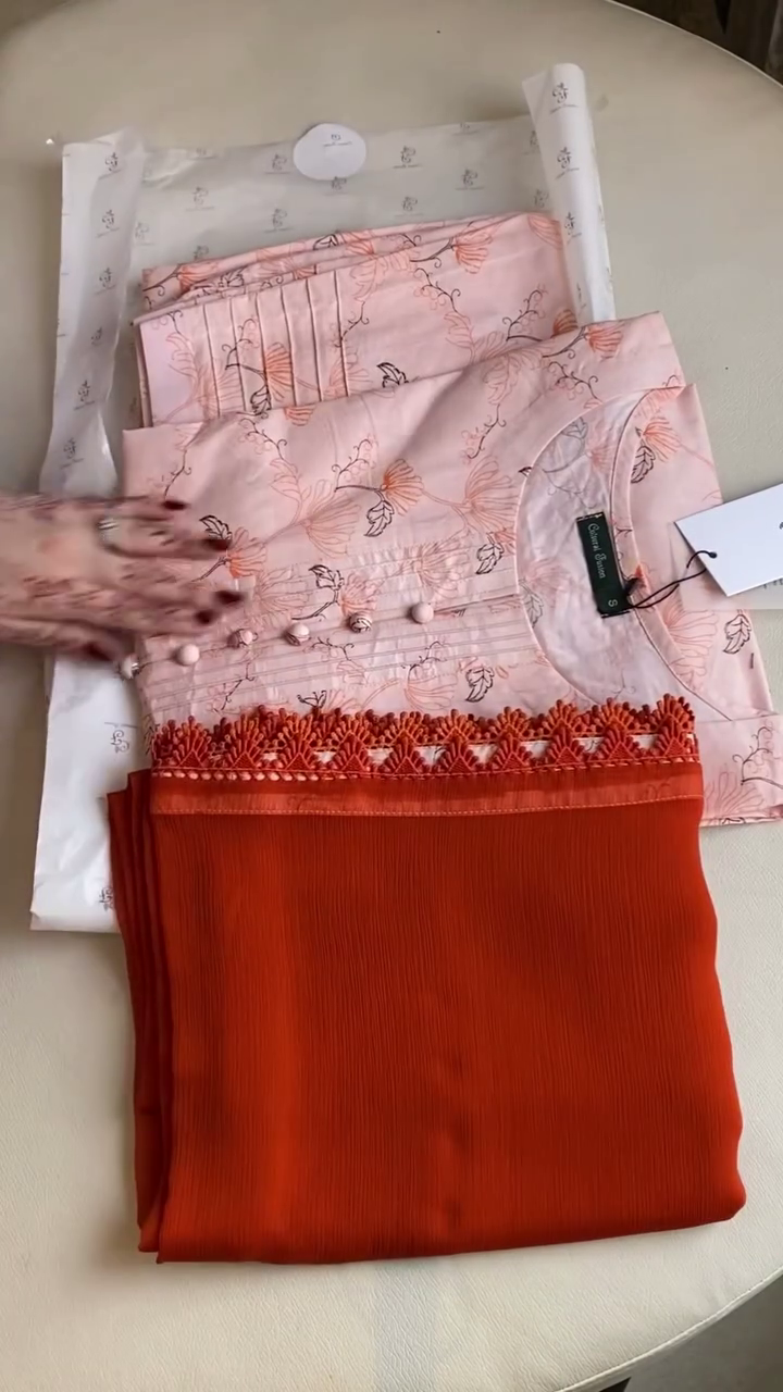• Style Highlight: The combination of peach prints, orange lace accents, and delicate button work makes this suit both elegant and comfortable for everyday summer fashion