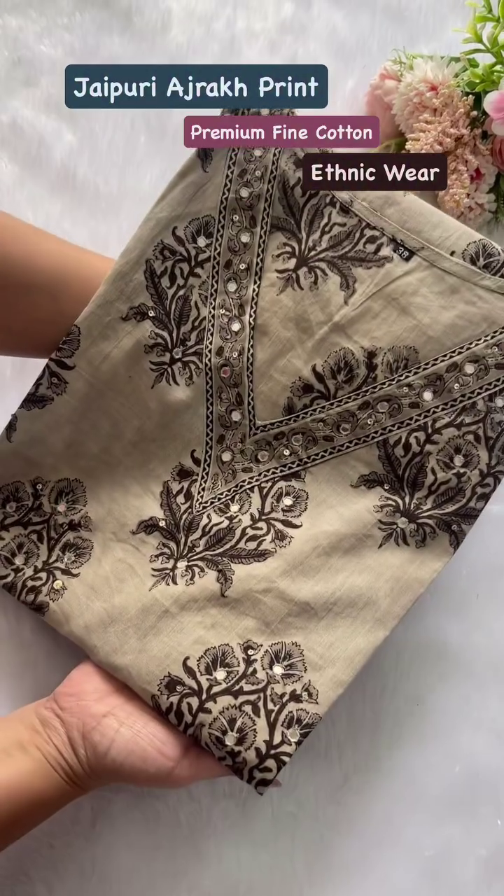Features authentic Jaipuri Ajrakh prints known for their heritage artistry
