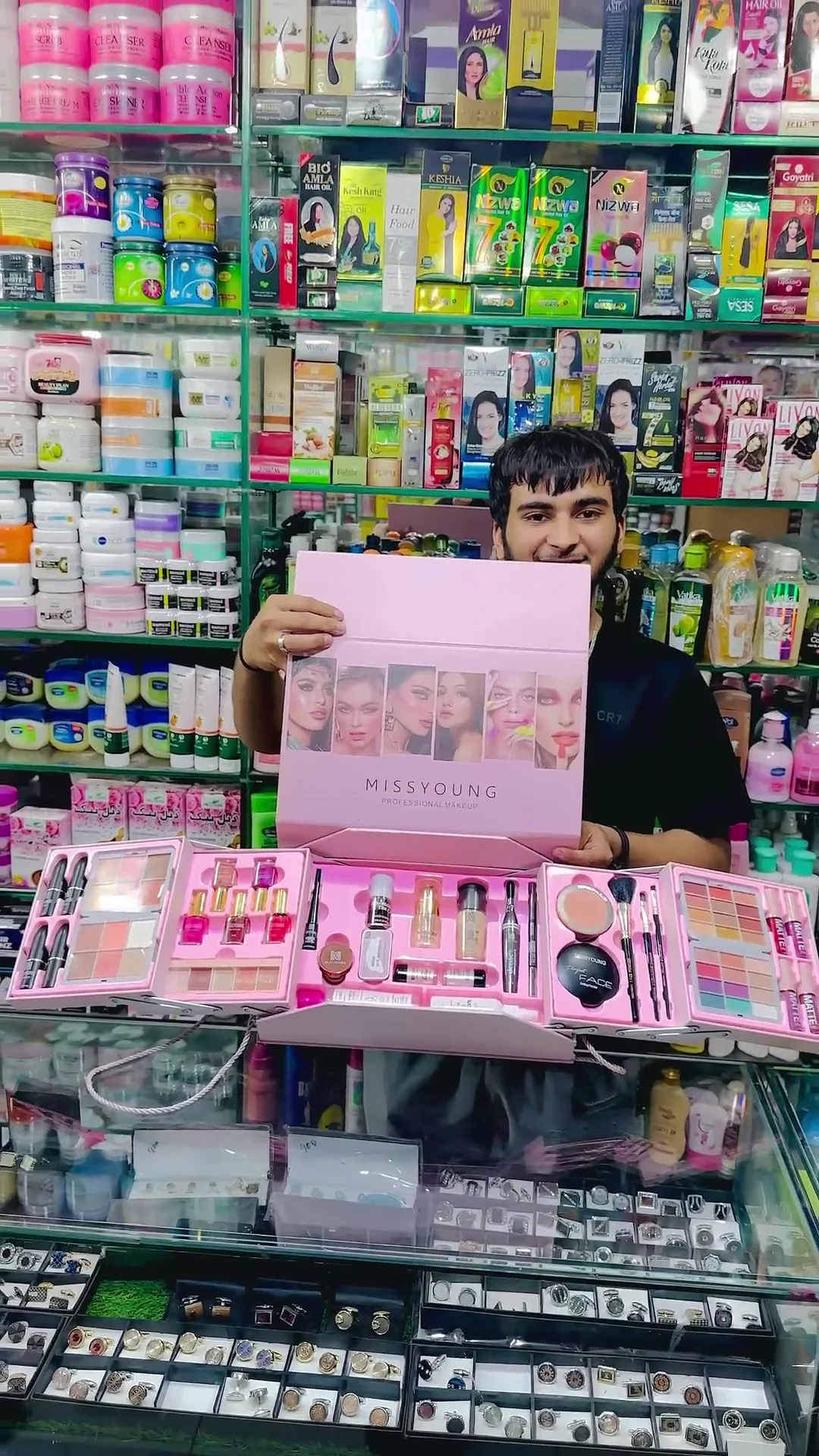• All-in-One Makeup Kit – Includes foundation, primer, concealer, compact powder, blush, highlighter, lipsticks, lip gloss, eyeliner & mascara.