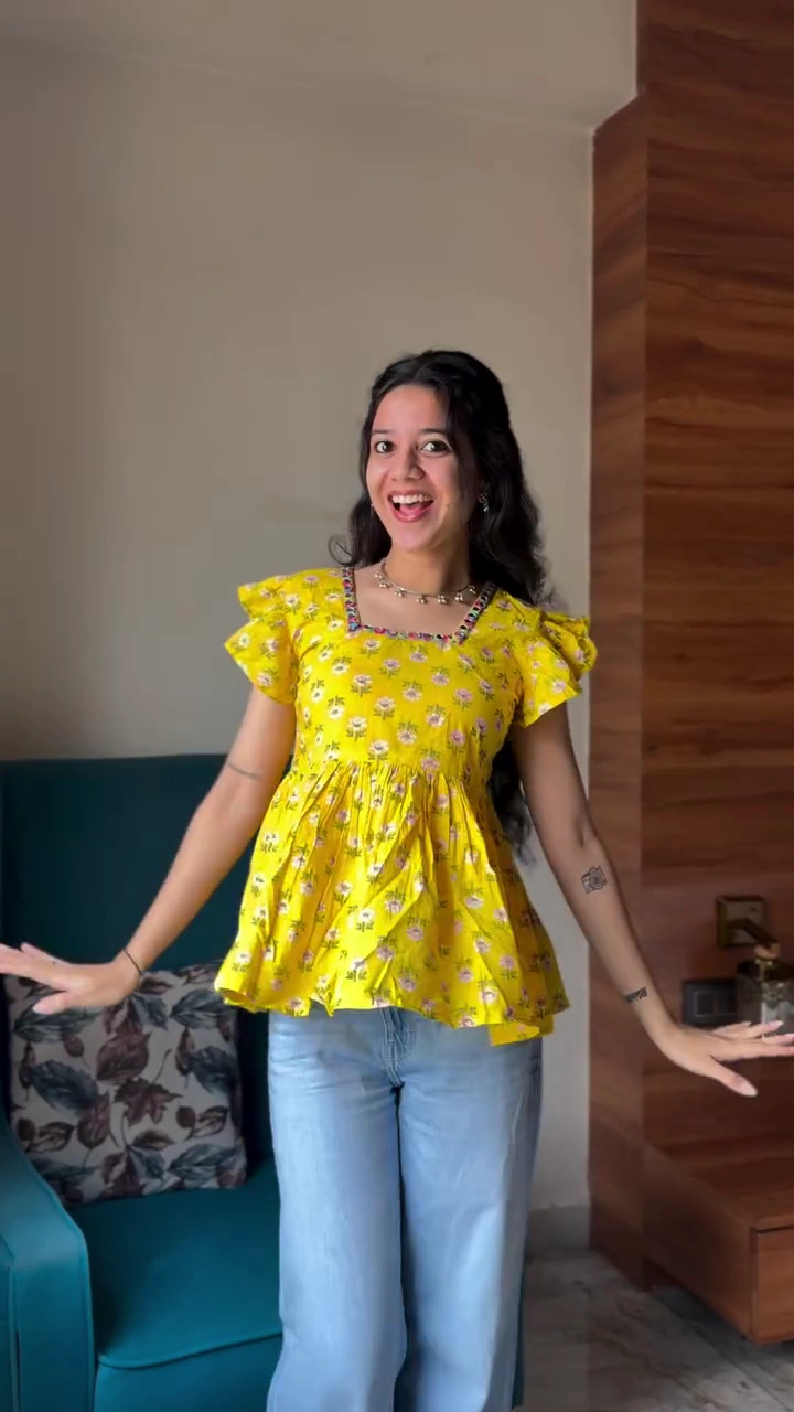 Playful Sleeves: Designed with trendy layered flutter sleeves that add volume and a youthful vibe.