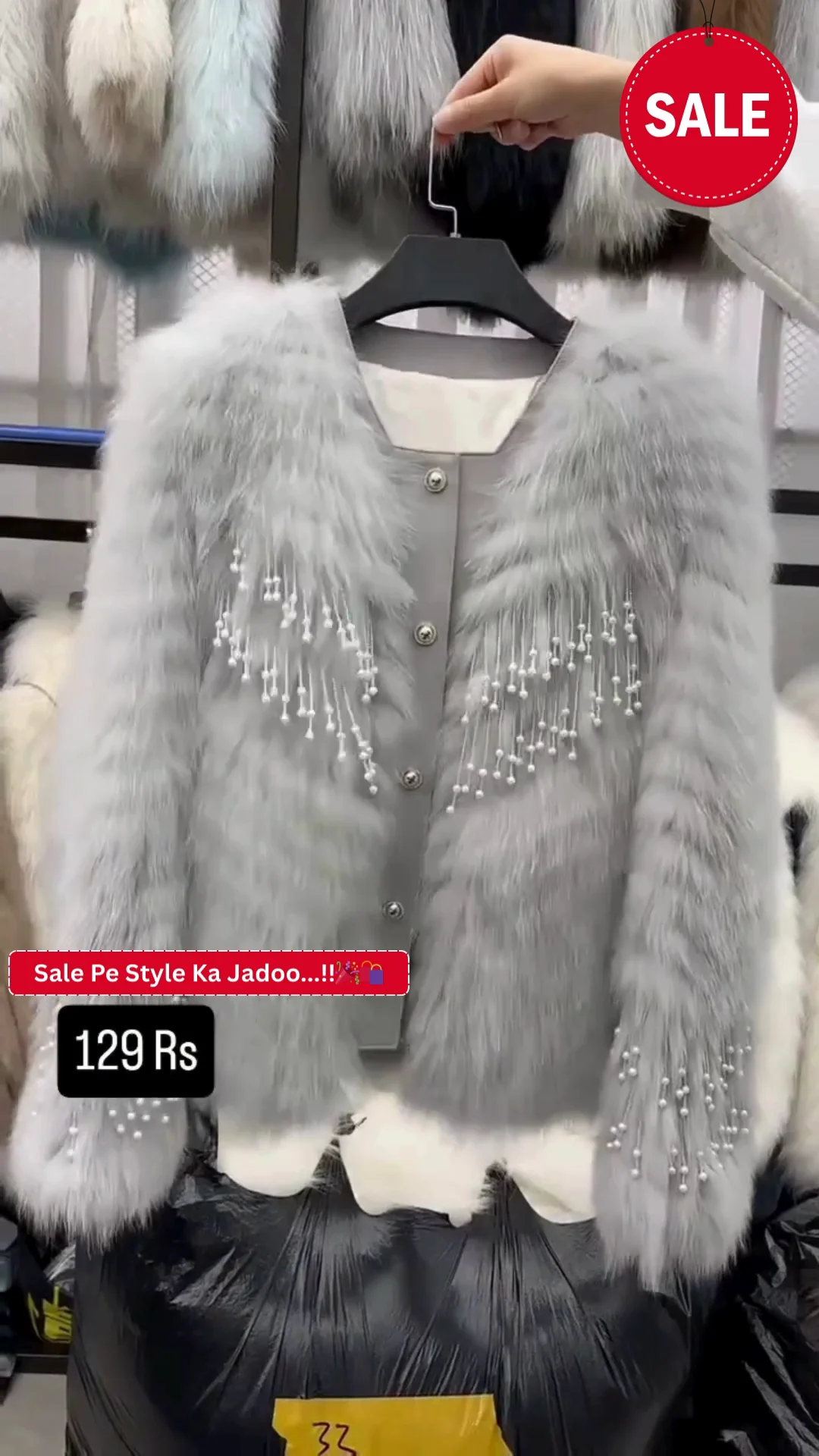 + Free ShippingElevate your cold-weather ensemble with this stunning silver-grey faux fur jacket, a perfect blend of luxury and contemporary street style. The jacket features a plush, high-pile texture that provides both warmth and a high-end aesthetic. The front is uniquely detailed with a delicate fringe of white pearls draped across the chest, creating a sophisticated movement that catches the eye.