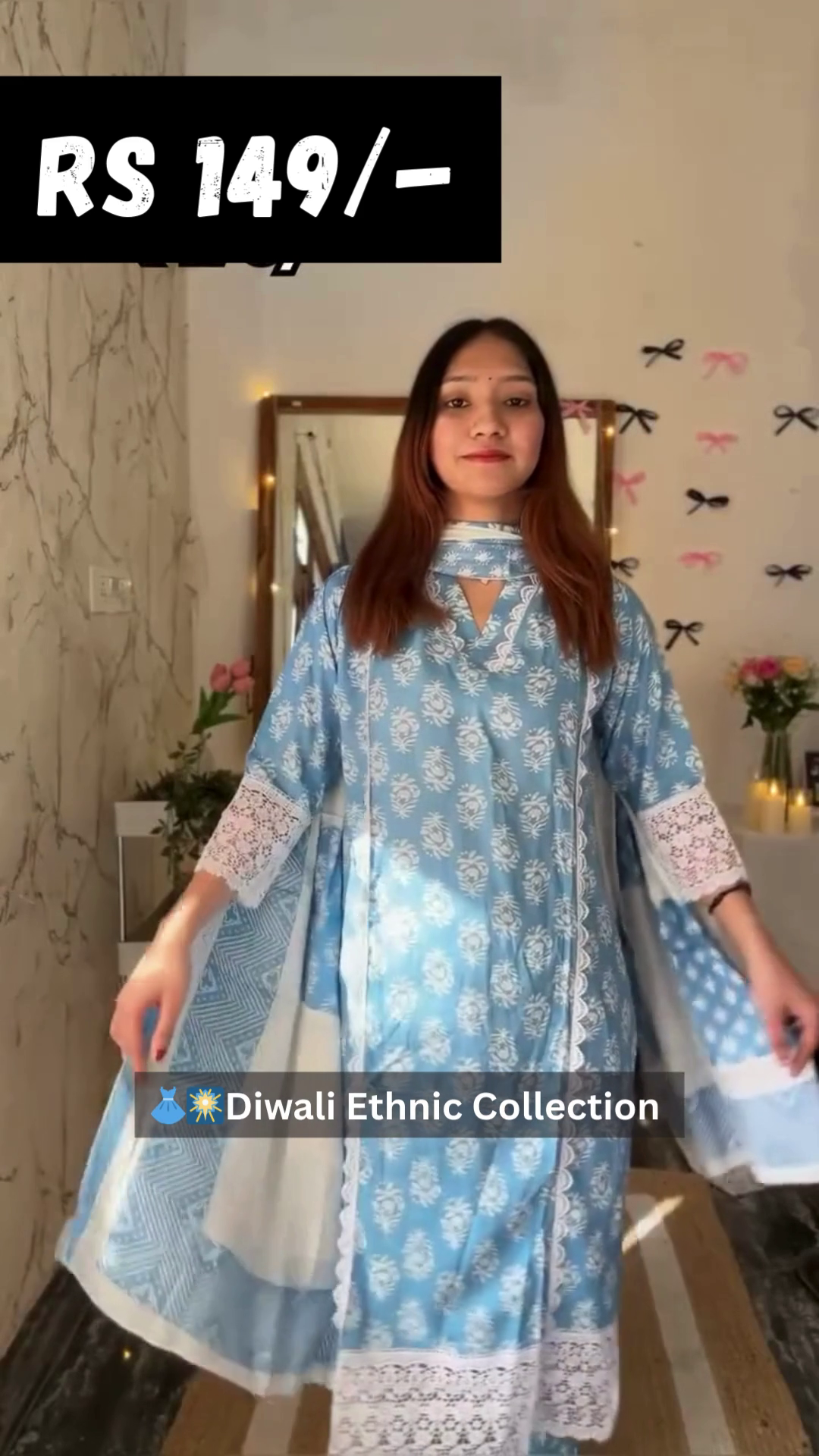 Festive Special Kurti Set ? Elegant floral printed cotton kurti paired with a matching dupatta.
