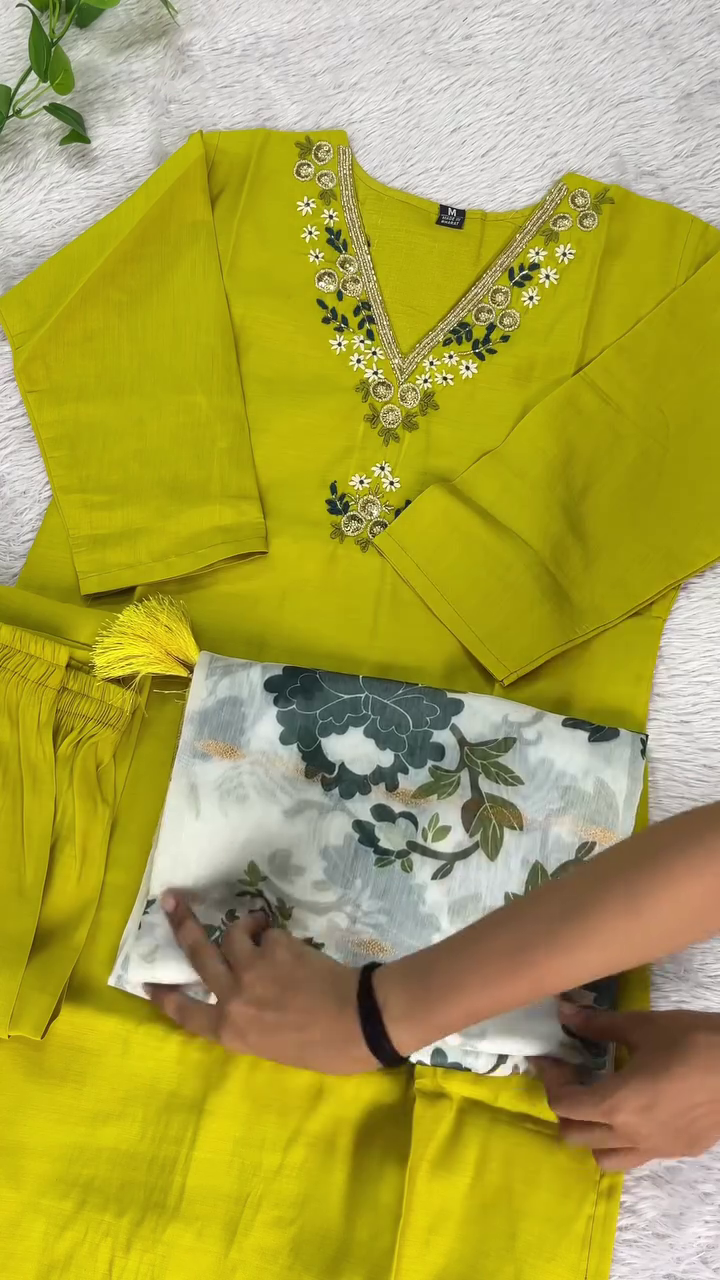 • Stylish Lime Green Kurta: Bright and elegant hue with delicate embroidery for a festive look.