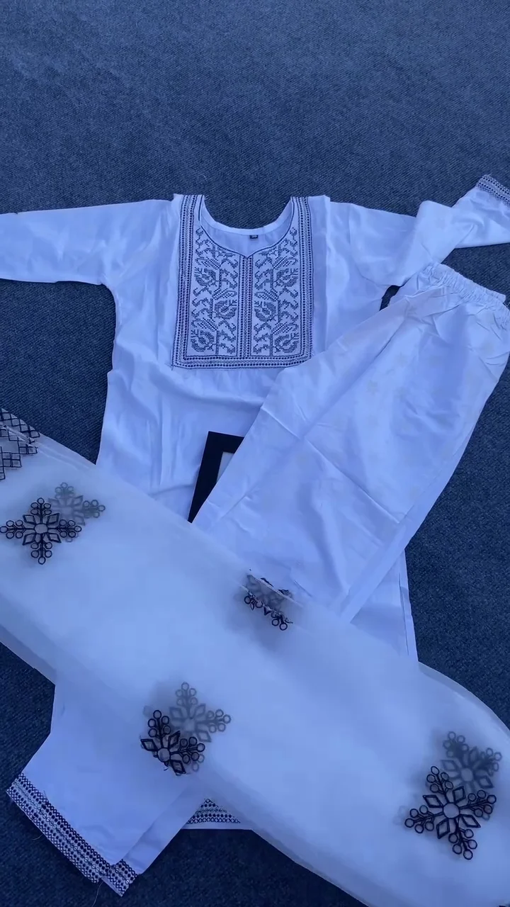 Fabric: High-quality, soft-touch Cotton for the kurta and trousers; lightweight Organza for the dupatta.