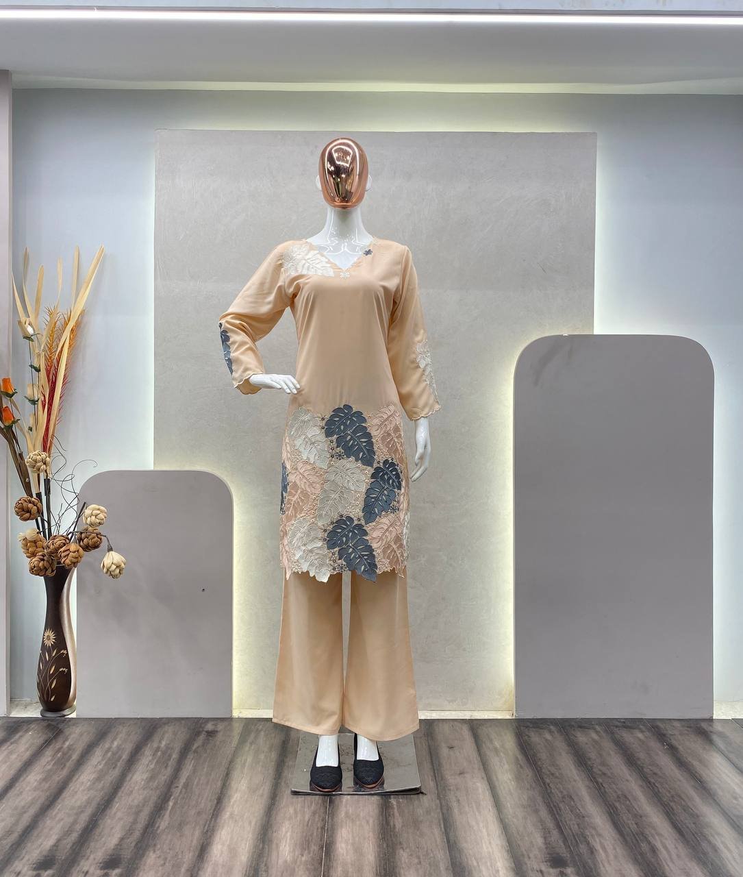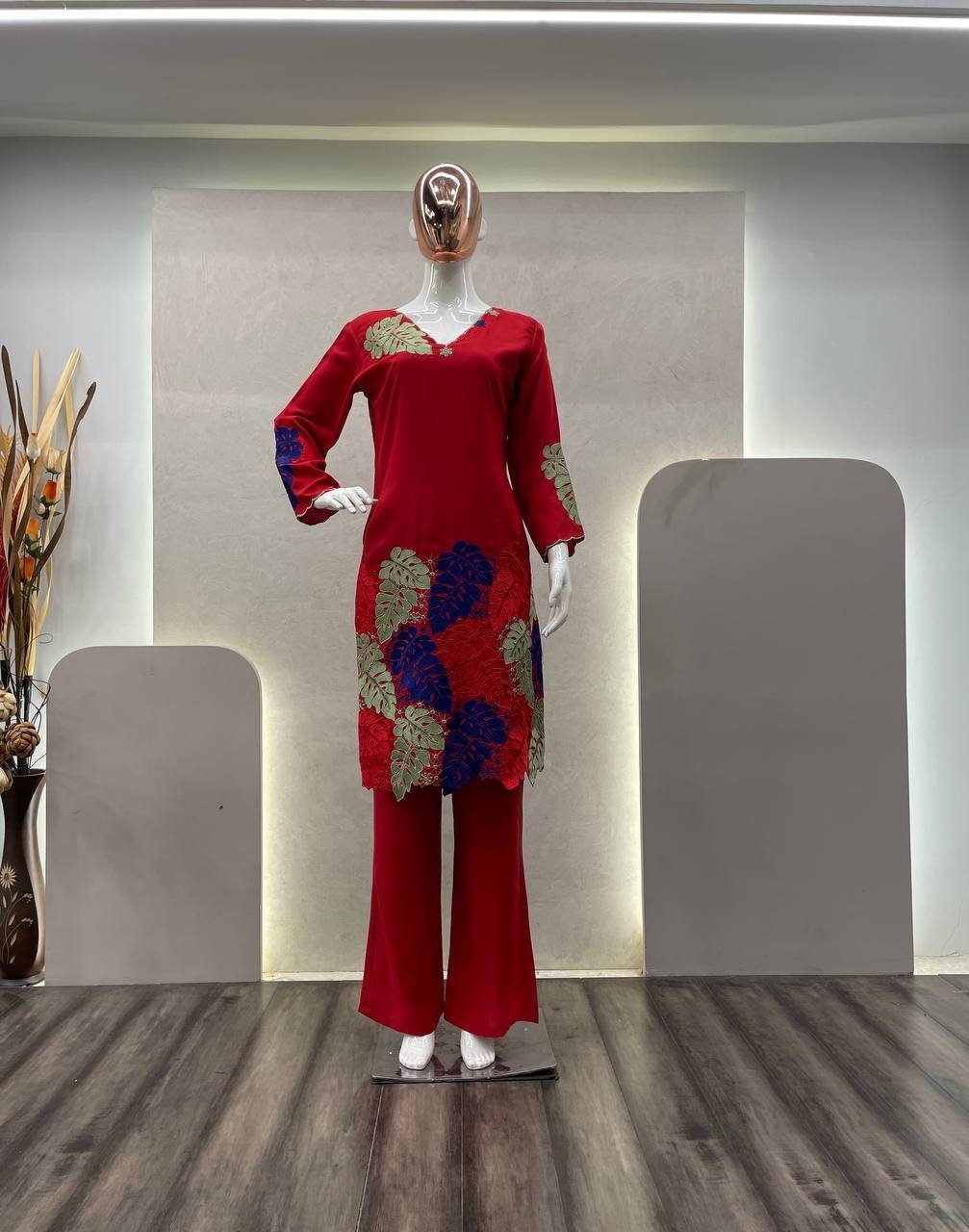 + Free ShippingCrafted From Luxurious Fiyona Silk, This Coordset Showcases Intricate Embroidery Work for a Touch of Elegance. The Fabric’s Premium Quality Adds to the Overall Appeal, Making It an Exclusive Piece for Any Occasion. Elevate Your Style With This Heavy Fiyona Silk Embroidery Work Coordset.