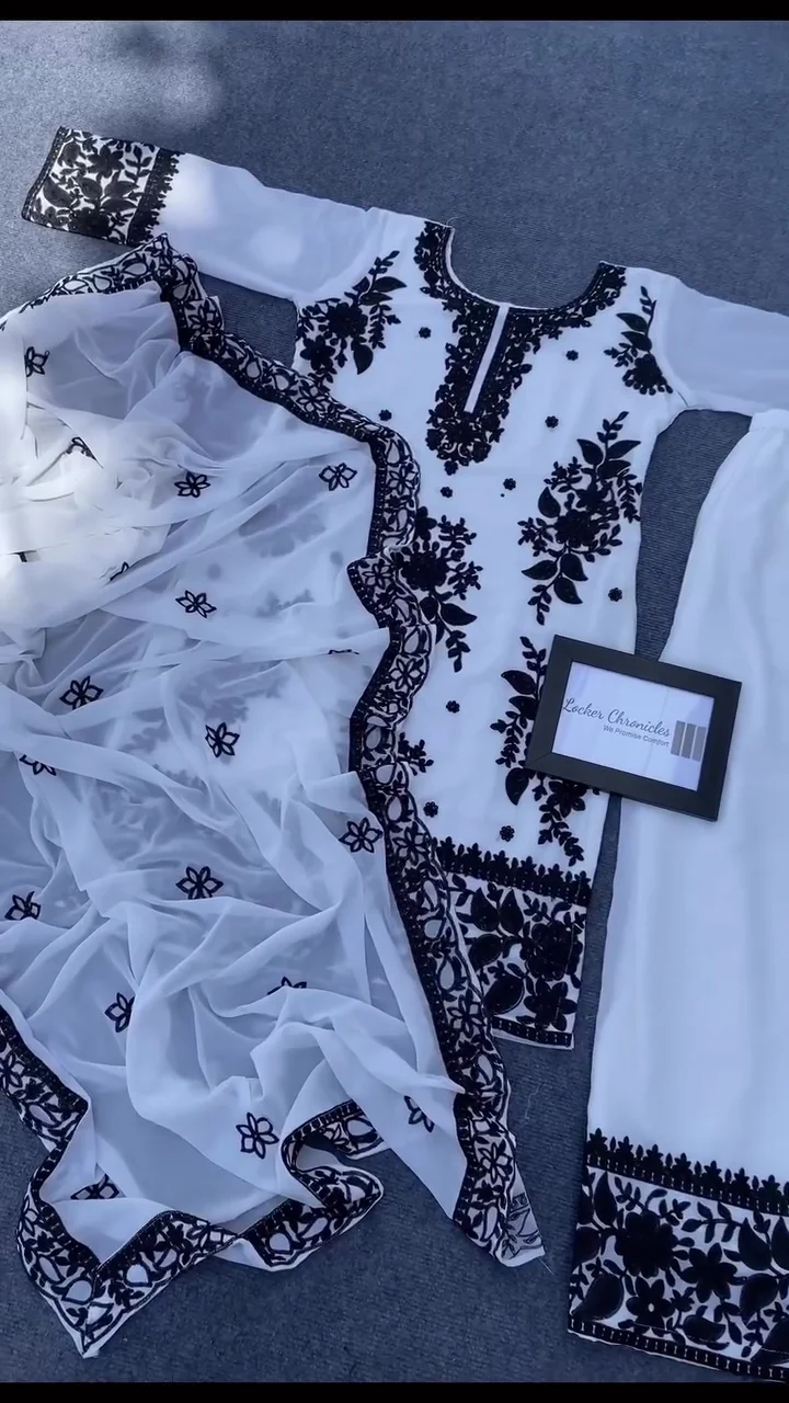 Exquisite White & Black Heavy Embroidered Georgette Salwar Kameez – Luxury 3-Piece Festive Collection