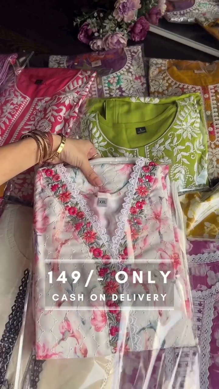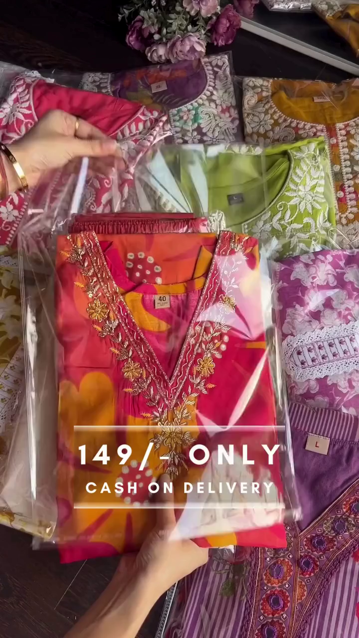 Embroidered Neckline: Elegant detailing that enhances the simple prints with sophistication.