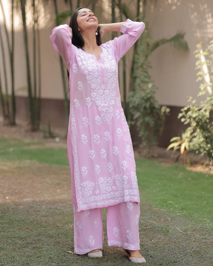 Fabric : Pure Heavy Rayon Chikankari Kurti And Pant