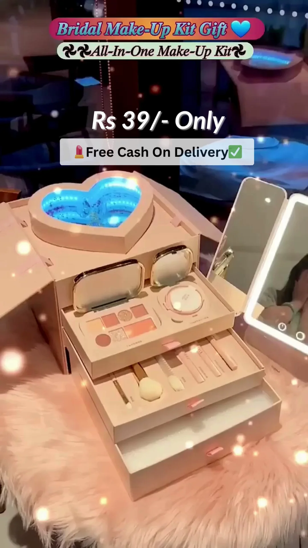 Experience a fairytale transformation with our Enchanted Heart Bridal Makeup Vanity. This exquisite, multi-functional set is more than just a makeup kit; it is a complete, illuminated beauty station designed to make every user feel like royalty. Encased in a soft blush-toned exterior, the vanity features a stunning LED-lit heart centerpiece that creates a magical atmosphere for your daily beauty routine.