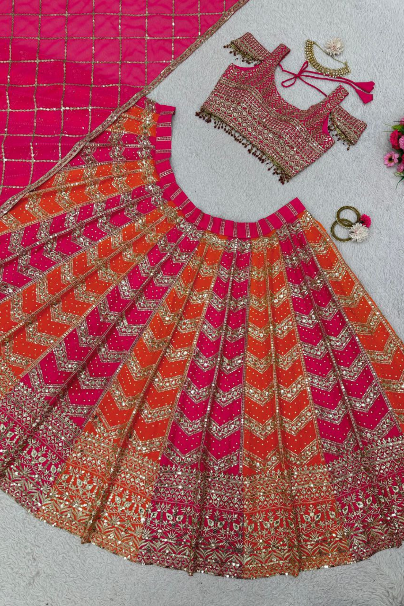 Be the first to review “MULTI COLOR FAUX GEORGETTE DESIGNER WEDDING WEAR LEHENGA SET”