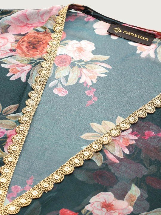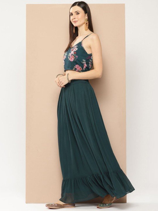 Teal & Pink printed crop top, has shoulder straps, sleeveless