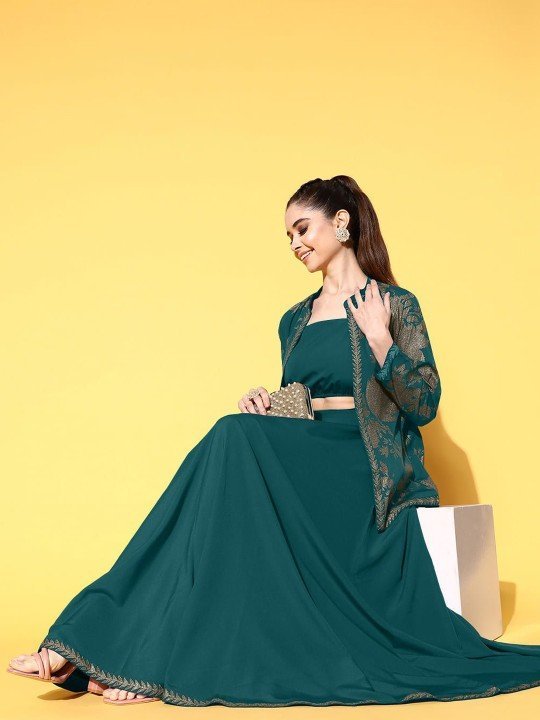 + Free ShippingThis co-ords consists of top, jacket and skirt