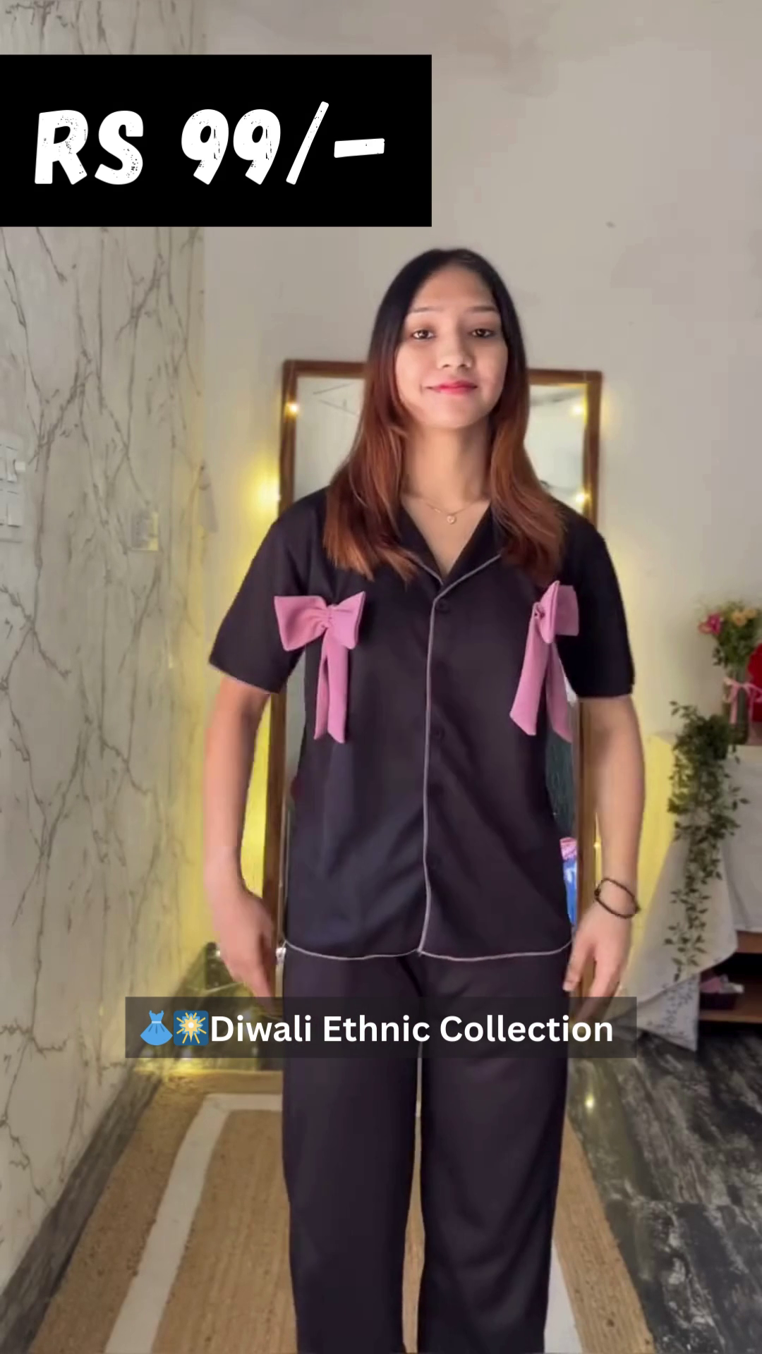 • Stylish Shirt Top ? Button-down shirt style tops paired with relaxed-fit pajama bottoms.