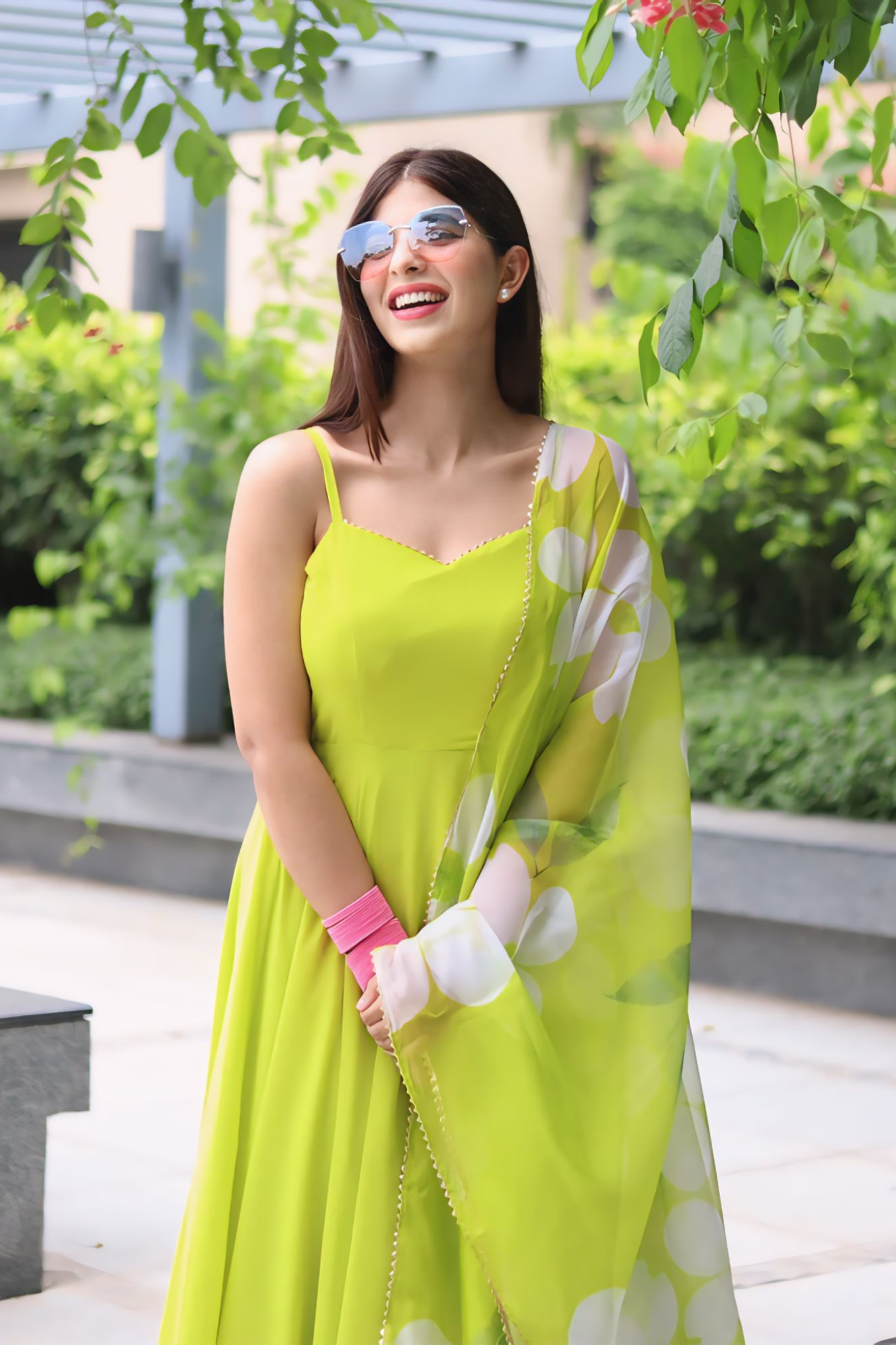 SOFT ANARKALI GOWN WITH FLORAL PRINTED DUPATTA