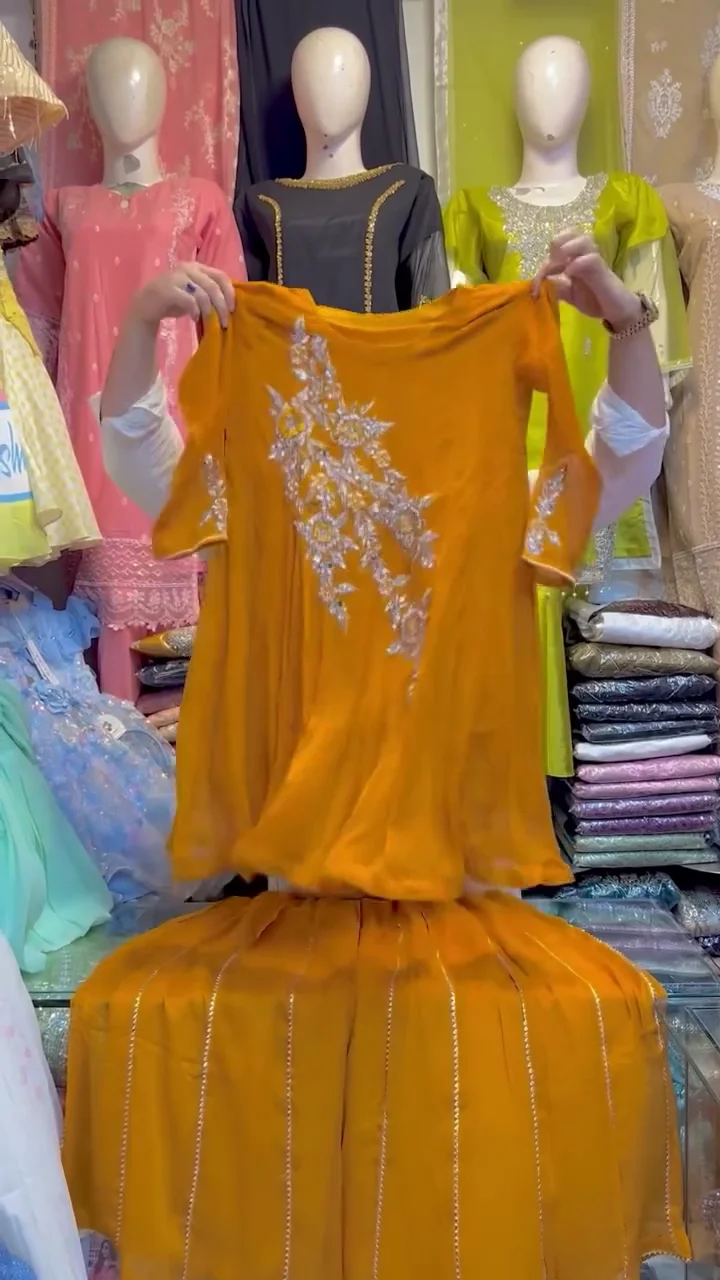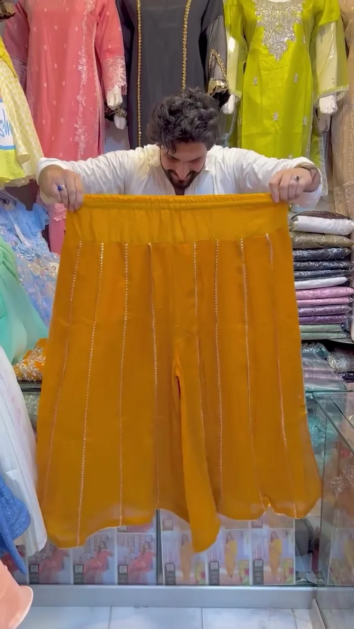 Bright and elegant yellow sharara pair that adds freshness and festive charm.