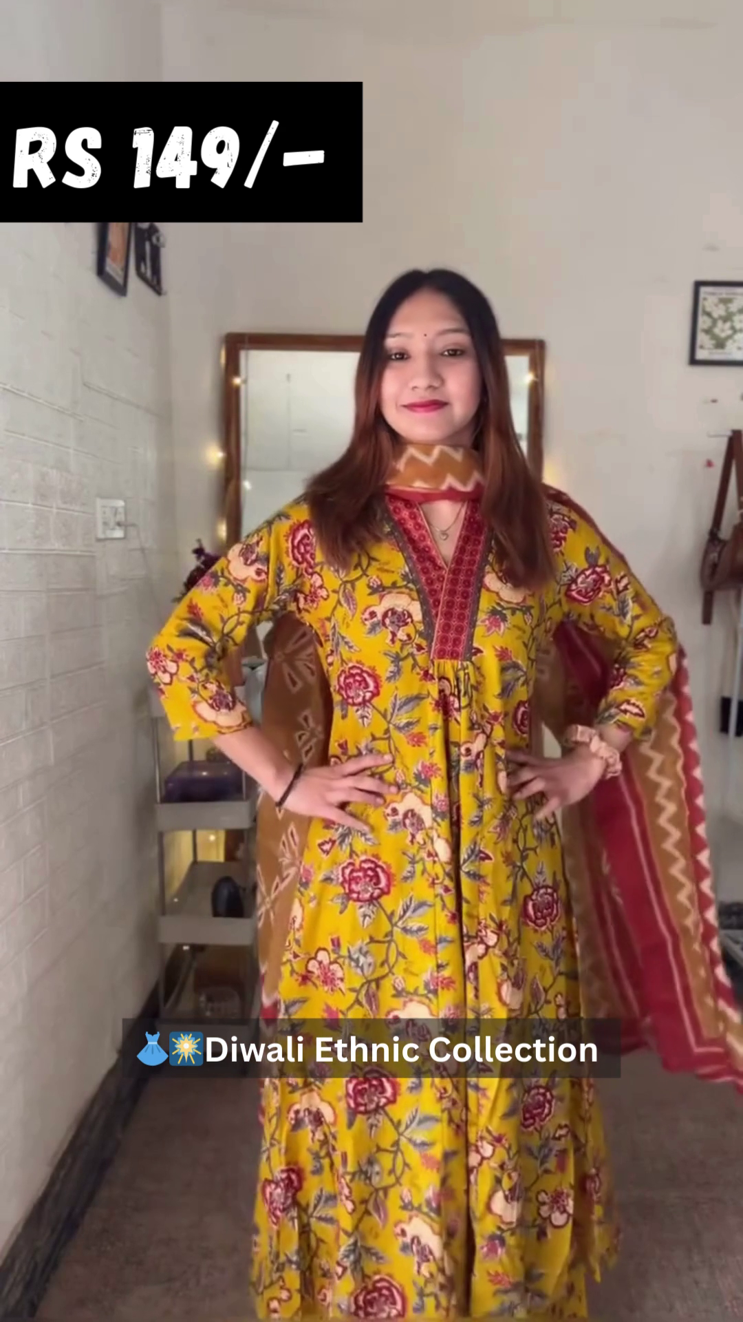 Elegant Anarkali Set – Beautiful floral print long kurta paired with a matching dupatta.