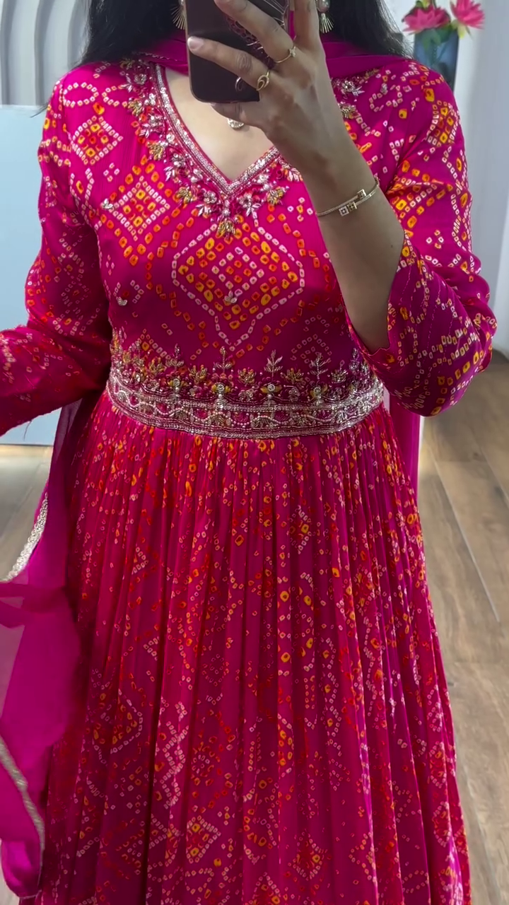 • Style Highlight: The Bandhani pattern with an embroidered belt adds a modern twist to a traditional Anarkali suit, making it a standout festive ensemble