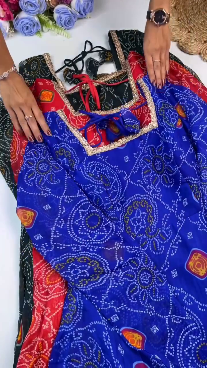 Care Instructions: Hand wash recommended to preserve Bandhani print and mirror work detailing.
