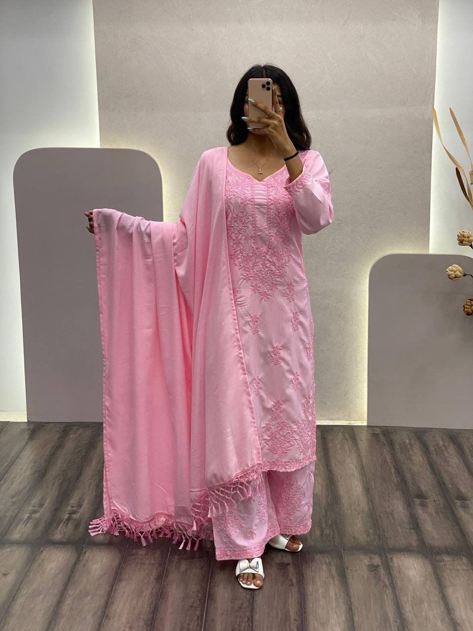 Trending Hit Pure Maslin Chinkari Kurta Plazzo With Dupatta Set
