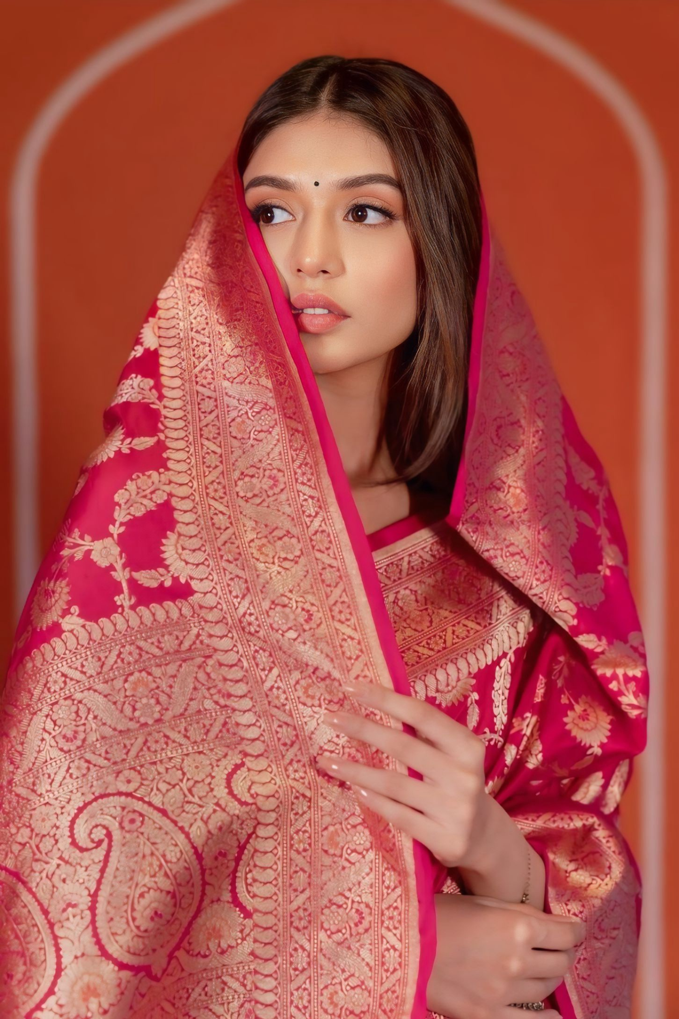 Beautiful Zari work in form of traditional motifs. This beautiful saree is elegantly decorated with gorgeous Solid Jacquard weave that gives a perfect look to the outfit.