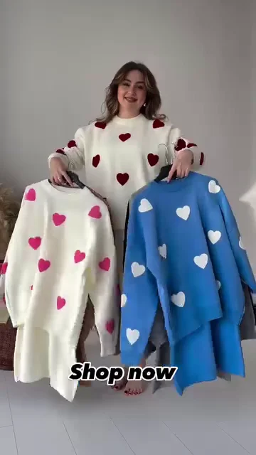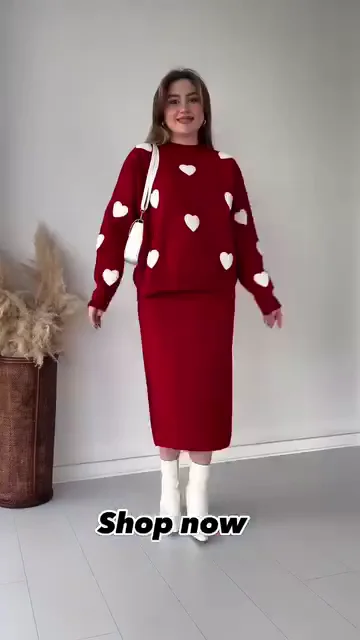 • Versatile Styling Options: Wear as a full set for maximum impact, or style the heart sweater with your favorite denim and the knit skirt with a crisp white button-down.