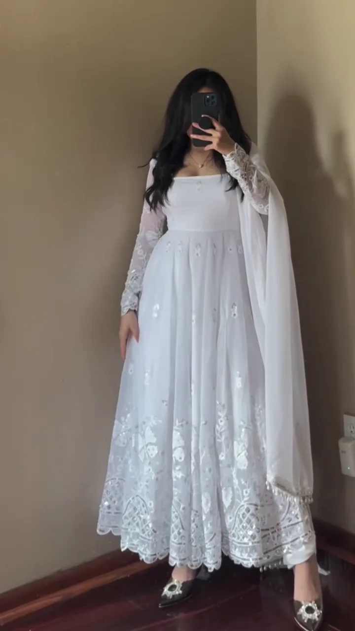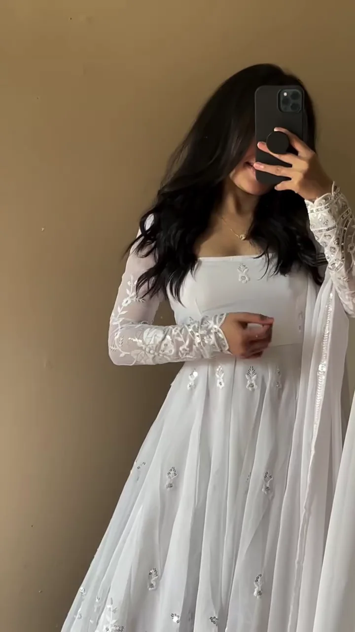 White Anarkali Suit for Women – Elegant Floor-Length Embroidered Anarkali Dress with Dupatta for Weddings, Festive Occasions & Party Wear