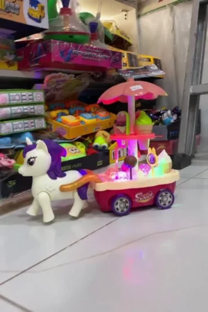 Magical Unicorn Candy & Ice Cream Cart Toy with 3D LED Lights, Music, and Rotating Umbrella