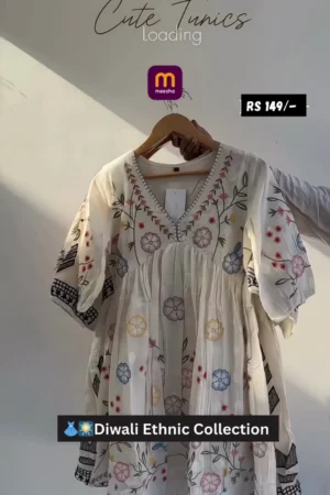 Bandhani Printed V-Neck Angrakha Pure Cotton Kurta With Palazzos And Dupatta