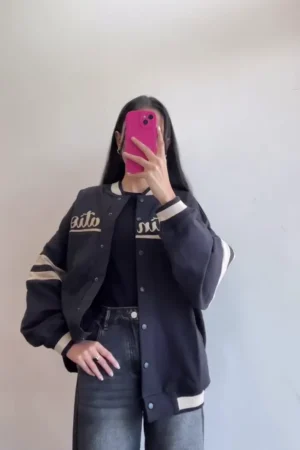 Women’s Premium Oversized Varsity Bomber Jacket & Zip-Up Ribbed Knit Sweater Combo – Trendy Streetwear Winter Collection