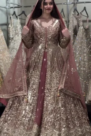 Elegant Wine Anarkali Suit with Stone and Bead Work on Bodice
