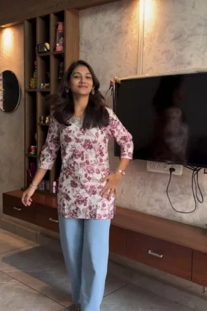 Premium Cotton Ethnic Tunics | Elegant Red Ikat & Purple Floral Printed Short Kurtis | Comfort Fit 3/4 Sleeves Daily & Office Wear